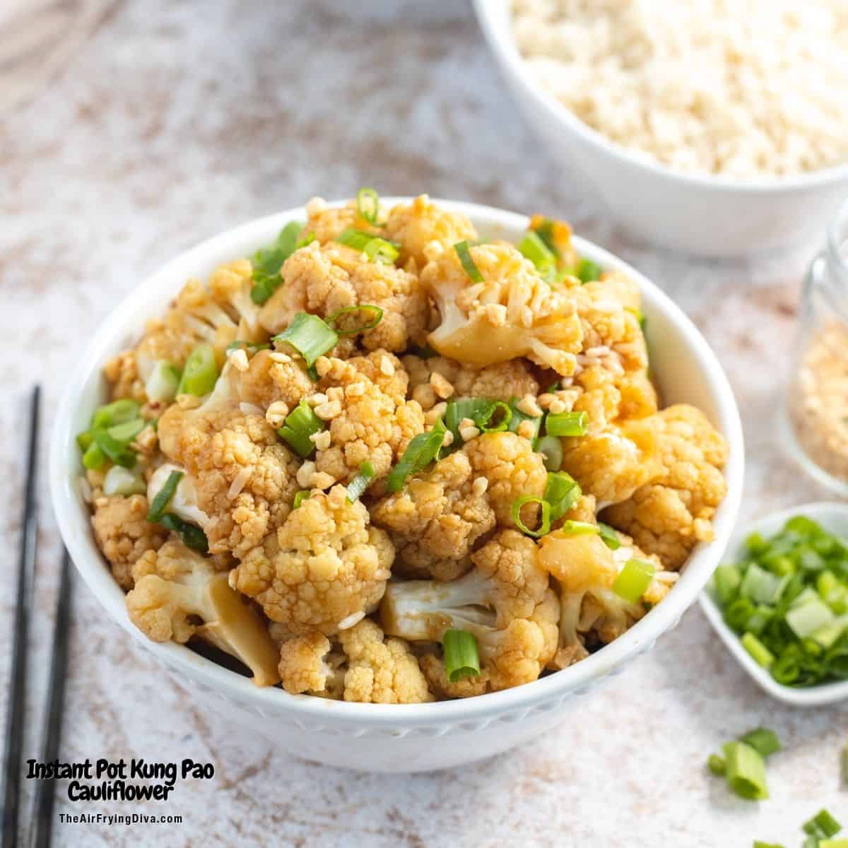 Instant Pot Kung Pao Cauliflower, savory, sweet, and somewhat spicy cauliflower florets pressure cooked to perfection in 20 minutes.